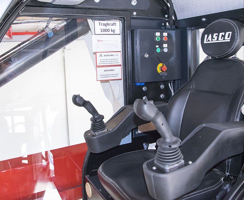 La grue brevetée à bras télé-articulé existe avec cabine avancée de 1,5 m, 2,4 m et 3,4 m. La cabine avancée ensemble avec le système de bras garantit un travail rapide et sans danger. Pour répondre aux besoins, 5 systèmes de bras, avec une portée en profondeur de plus de 14 m, sont disponibles.