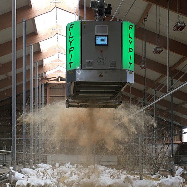 La Flypit 2 en 1 rend le paillage et l'alimentation possible avec une seule machine. Un paillage régulier assure une litière sèche et une meilleur hygiène générale dans l'étable. La distribution est adaptée selon les besoins des différents lots, et contribue à améliorer sur le long terme la santé des bêtes.